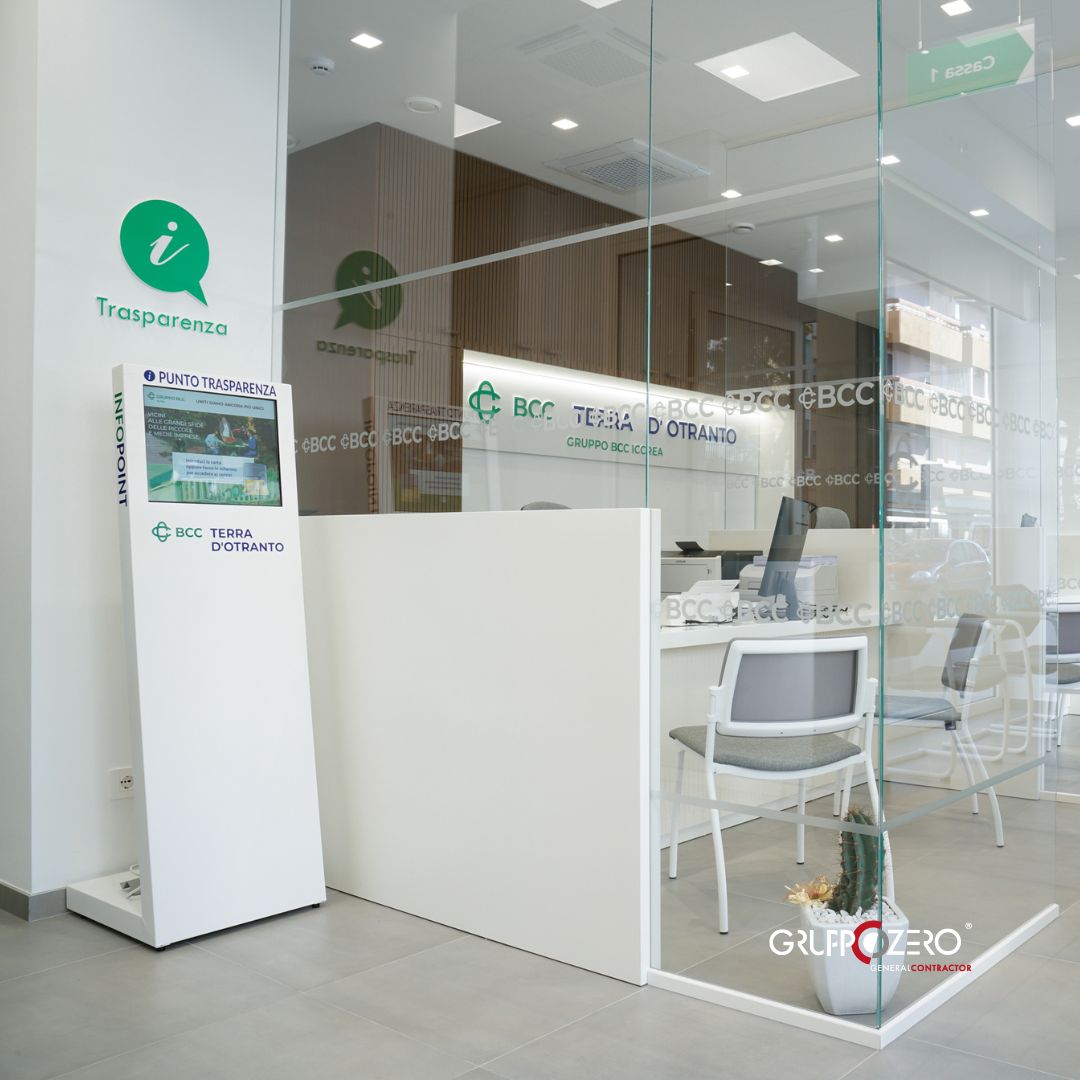 Per la nuova sede della Banca BCC di Brindisi, Gruppozero ha seguito ogni dettaglio, realizzando un ambiente professionale su misura, progettato per unire estetica, funzionalità e sistemi all’avanguardia.
