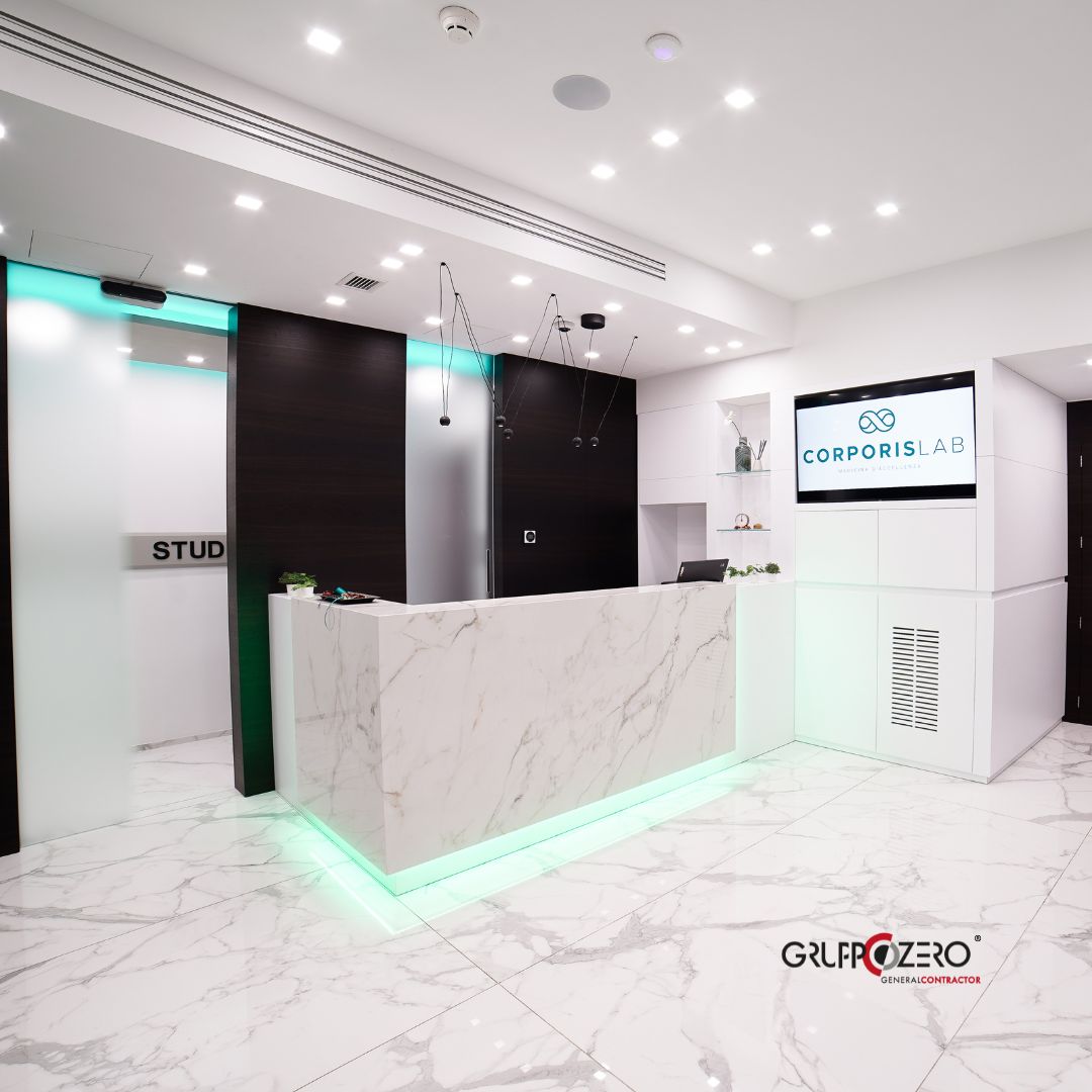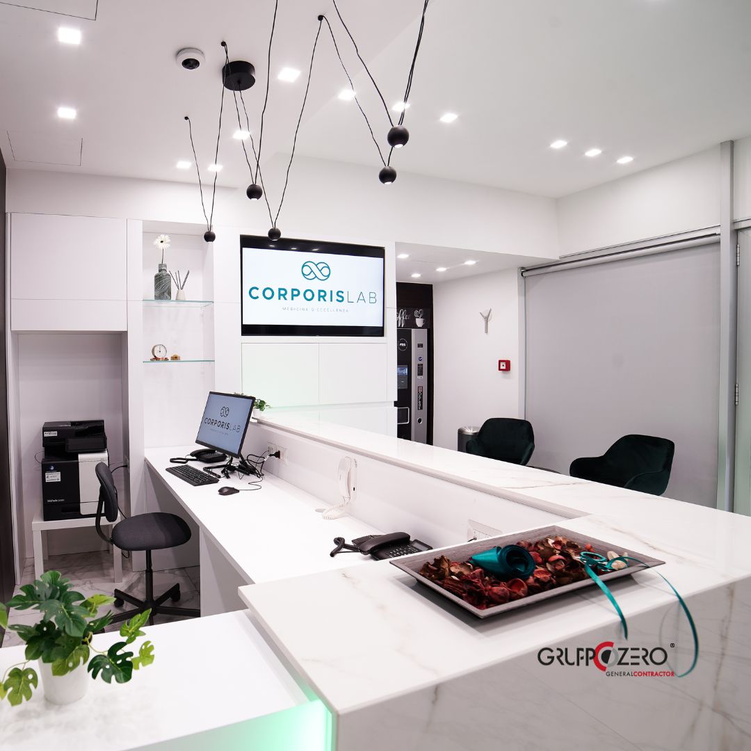 Corporis Lab è un centro medico d’eccellenza che sorge alle porte di Lecce, facilmente raggiungibile, situato all’interno di un complesso commerciale vivace e ben servito. La mission che lo anima, quella di mettere al centro di ogni attività il benessere e la salute del paziente, è chiaramente espressa negli ambienti e nelle architetture, che si presentano rigorosi, eleganti ma nel contempo accoglienti e familiari. Il mood è lineare, estremamente minimal con una base cromatica bianca ma contaminata dall’essenza decisa del legno in rovere termocotto e da alcuni dettagli verde bosco. Anche nella scelta degli arredi e dei complementi si possono notare forme lineari, pulite, disegnate su misura.